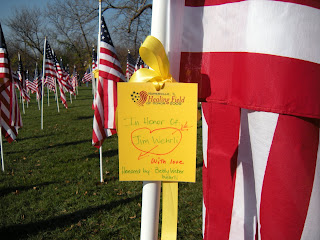This morning, Jim and I went to experience this touching field of Old Glory. The bright, softly waving flags were so full of meaning with yesterday's memories and tears and those of today... and sadly, those of tomorrows yet to be.....